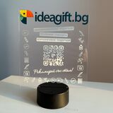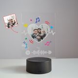 Нашите триизмерни лампи могат да бъдат отпечатани с Ваша снимка и пожелание. Добавете връзка към любимата си песен. И всеки път, когато сканирате кода, отпечатан върху музикалния плакет, чрез приложението Spotify с Вашето мобилно устройство, на него ще зазвучи Вашата песен.