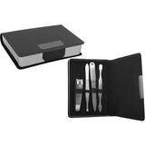 Комплектът за маникюр "Storyline" е изработен от мек, зърнест, материал и украсен с красив, хромиран надпис HUGO BOSS. Съдържа изчерпателен набор от инструменти за грижа от стомана: пила за нокти, ножици, пинсети, нокторезачка, инструмент за уши, средство за премахване на кутикула и вилица за кожа. Компактният му формат е изключително удобен както за пътуване, така и за домашна употреба.