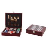 Луксозна кожена кутия с червени зарове за игра на ямб. Забавен и интересен подарък с уникална възможност за брандиране. Специална кожа, която оставя вашето лого/послание в сребърено след лазерно гравиране. Играта е опакована в черна лъскава картонена кутия. Правилата за играта Ямб можете да намерите в Приложените файлове към продукта.