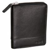 Мъжки портфейл от естествена кожа, колекция Бъфало, с две отделения за банкноти, едно странично отварящо се отделени за карти и лични документи. Монетник двойно тапициран с кожа против износване от монетите. Оделение с цип. Закопчаване от лицевата страна на портфейла. Размери: 8,5 / 10,5 / 2 см.