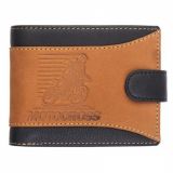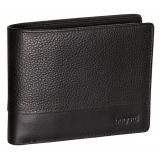 Мъжки портфейл от естествена кожа, колекция Италия, с две отделения за банкноти, едно отварящо се нагоре отделения за карти и лични документи, монетник двойно тапициран с кожа против износване от монетите. Размери: 12,5 / 9,5 / 2 см.