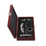 Луксозна дървена кутия за 2 бутилки вино с 5 аксесоара - тирбушон, тапа, запушалка, термометър и гривна плюс шахматни фигури за игра.