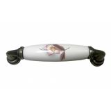 Мебелна дръжка P528 топче бял порцелан със сини цветя