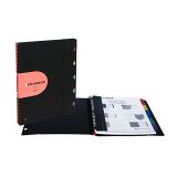 папка с 4 ринга, която се трансформира в настолен флипчарт за презентиране комплектован със сменяеми джобове с перфорация А4, 25 бр. джобове за визитка и CD на вътрешната страна на предната корица 5 разделителни джоба, етикети за надписване и отвори за визуализация екологичен продукт с високо качество от колекцията Exactive