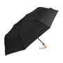 Напълно автоматичен (отваряне/затваряне), ветроустойчив сгъваем чадър RPET с 8 панела в калъфче в съвпадащ цвят. С метална рамка, ребра от фибростъкло и бамбукова дръжка.
