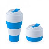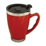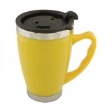 Метална, двустенна термочаша с пластмасови цветни елементи. 450 мл. В бяла картонена кутия.