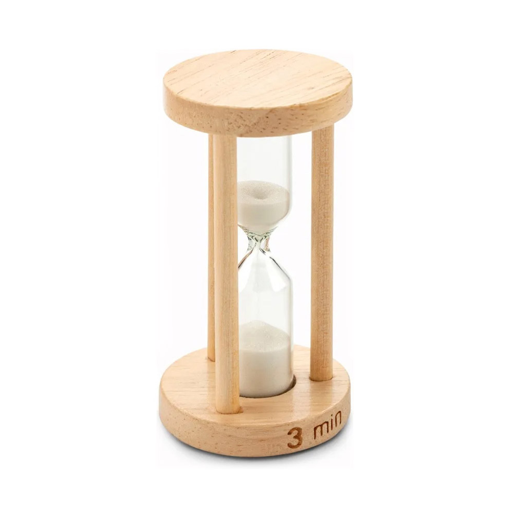 Пясъчен часовник. Време за измерване: 3 минути. Материал: дърво и стъкло. Размер: Ø42х89 mm. Печатаемо поле: 25х5 mm. Печат: гравиране.