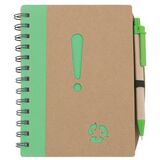 Еко бележник, формат A4, съдържащ 120 бели страници на широки редове. Химикалката е включена.