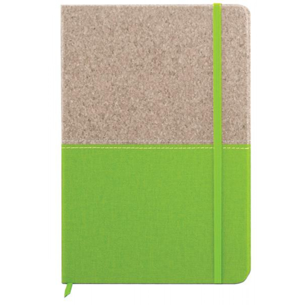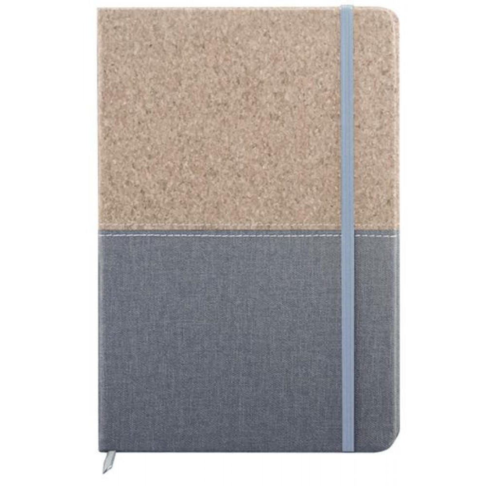 Тефтер A5 с коркови корици, ластик и разделител, 80 листа с редове, цвят на хартията слонова кост, твърда корица. Материал: корк, PU, хартия. Размер на артикула: 140х210х15 mm. Печатаемо поле: 90х55 mm. Печат: тампонен, ситопечат, гравиране.