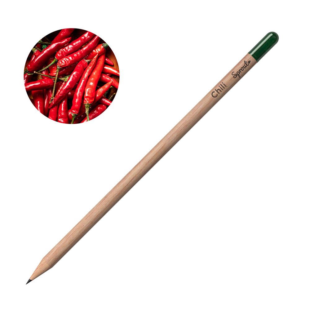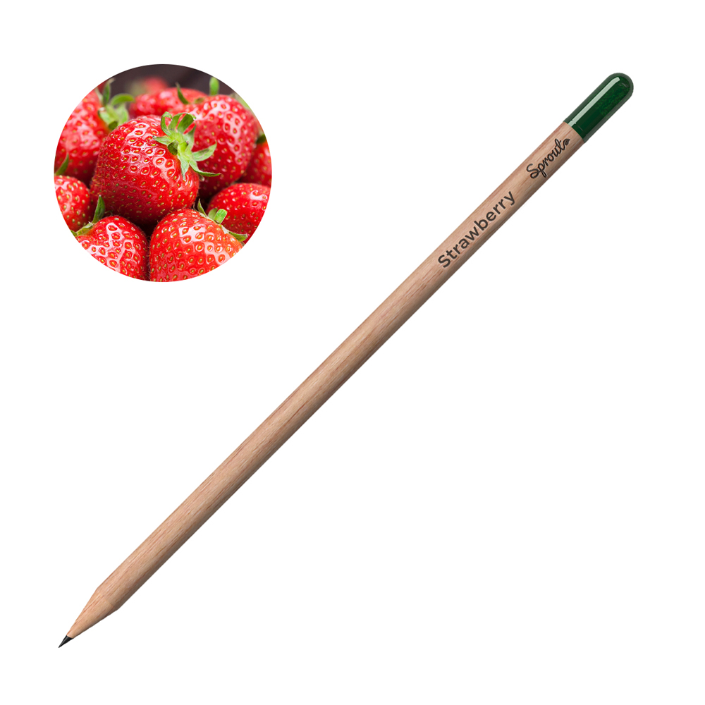 Рекламен графитен молив с капсула съдържаща семена за засаждане на ягода.