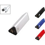 Външна батерия, капацитет 4000 mAh, включен кабел за зареждане. Материал: метал. Размер: 105x67x11 mm. Печатаемо поле: 80х50 mm. Печат: тампонен, ситопечат, гравиране