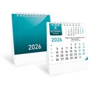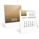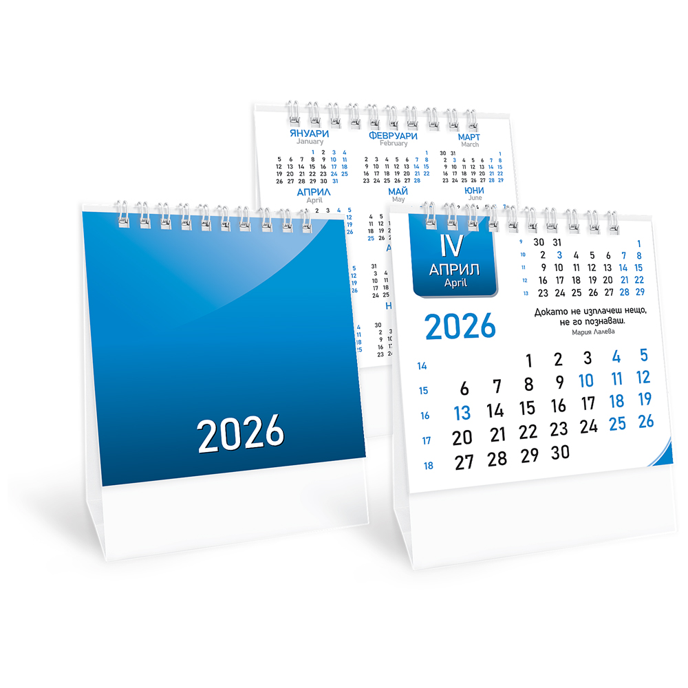 8 листова настолна пирамидка, сглобена с допълнителна корица, двустранно цветна, малък размер, с изчистен дизайн и отличаващи се цветове.