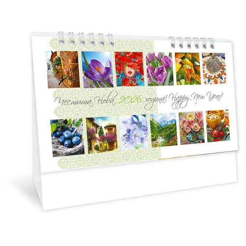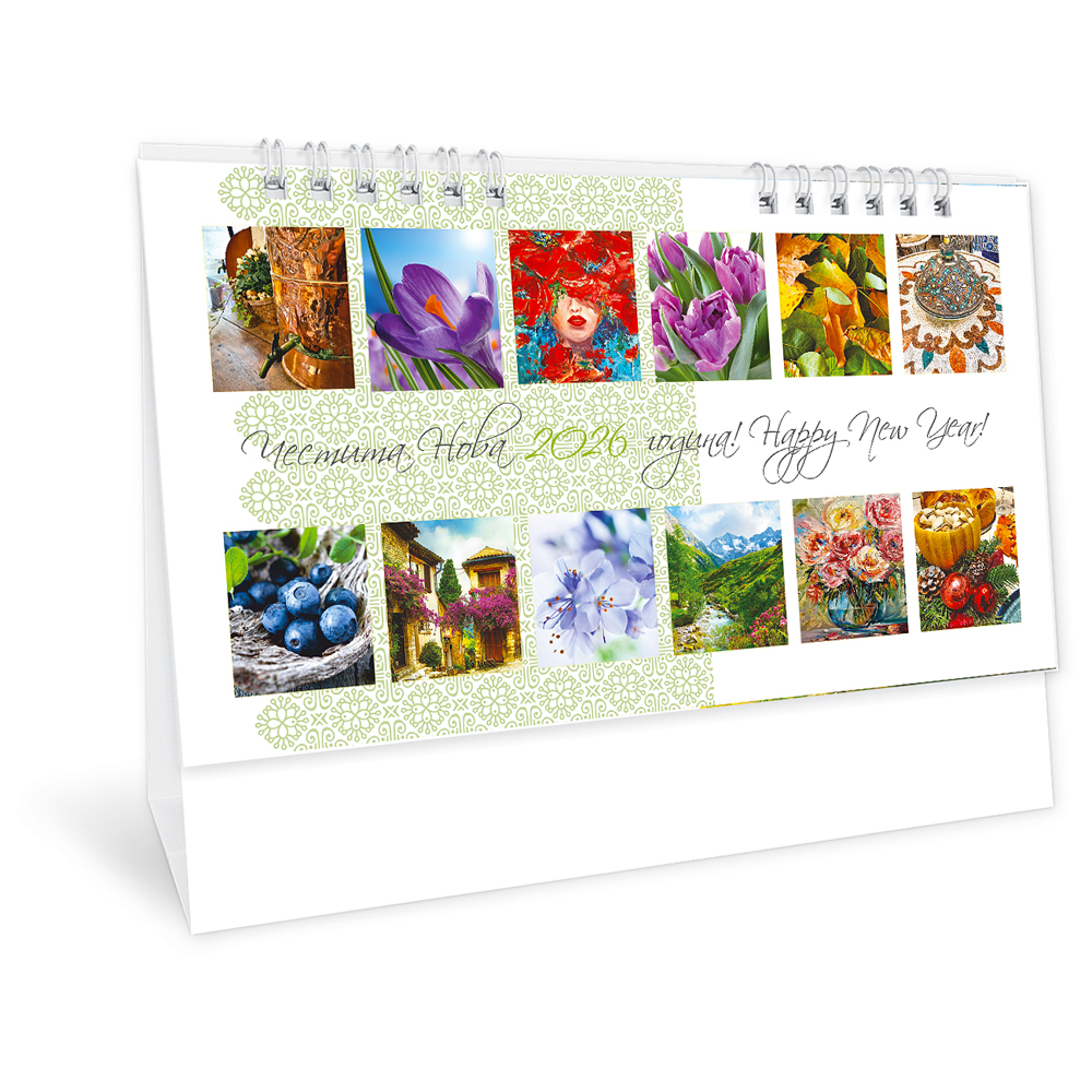 отпечатана на висококачествена хромова хартия, ДВУСТРАННО ЦВЕТНА, лакирана, подвързана със спирала и стабилна картонена основа.