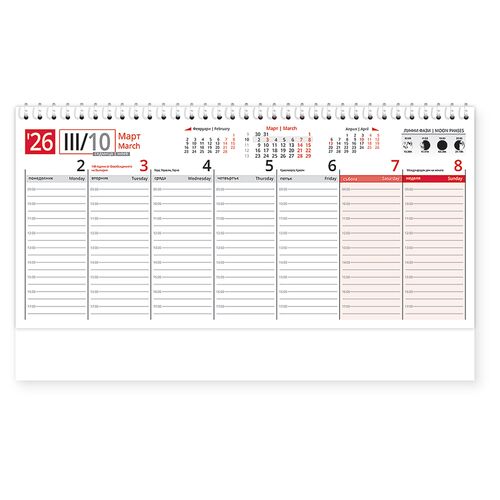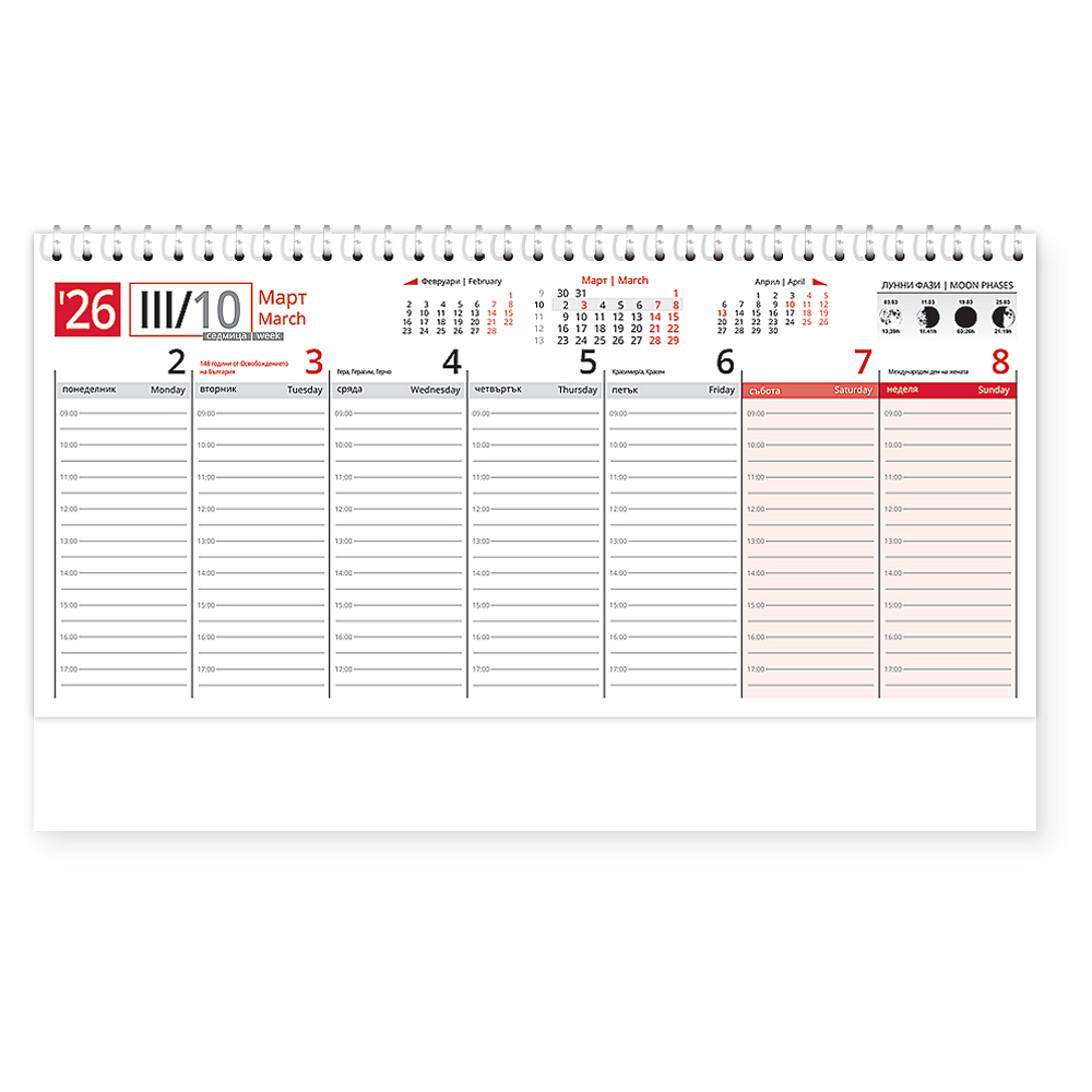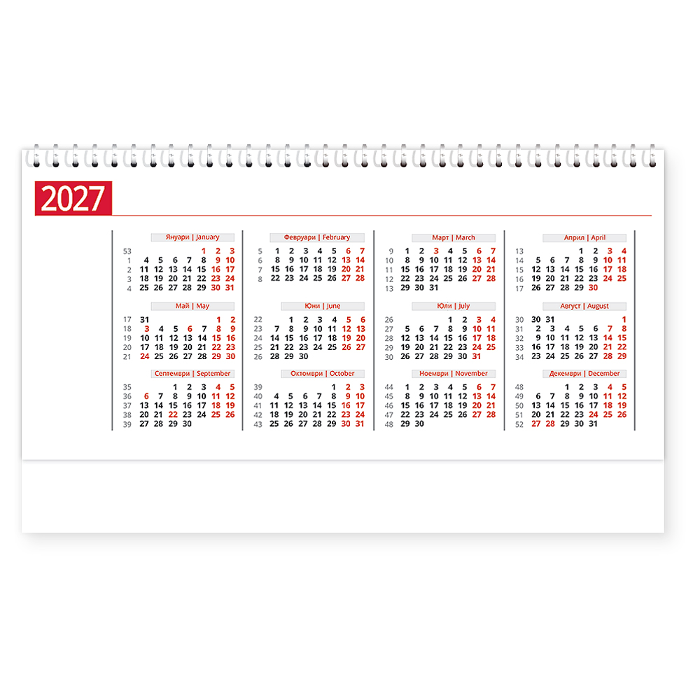 Висок контраст на работното поле. КАЛЕНДАРИУМ: 2 езика - български и английски