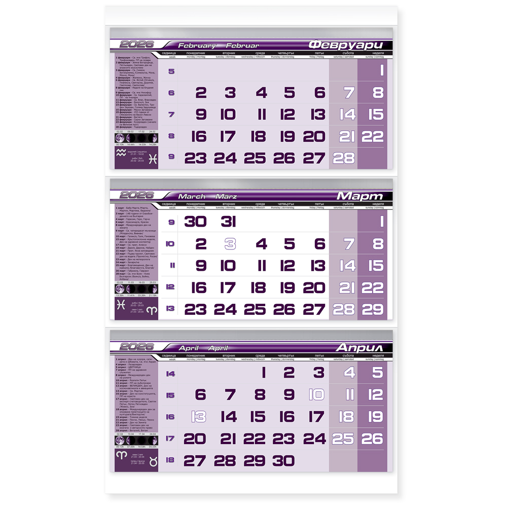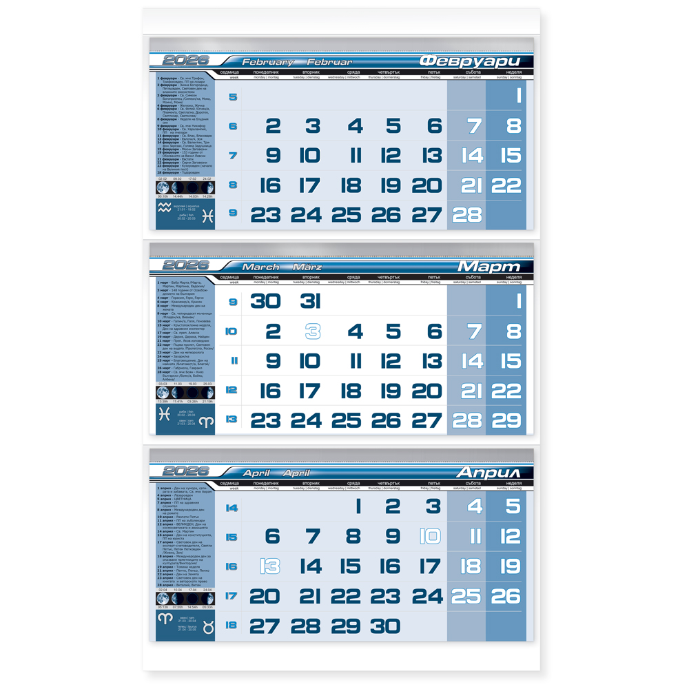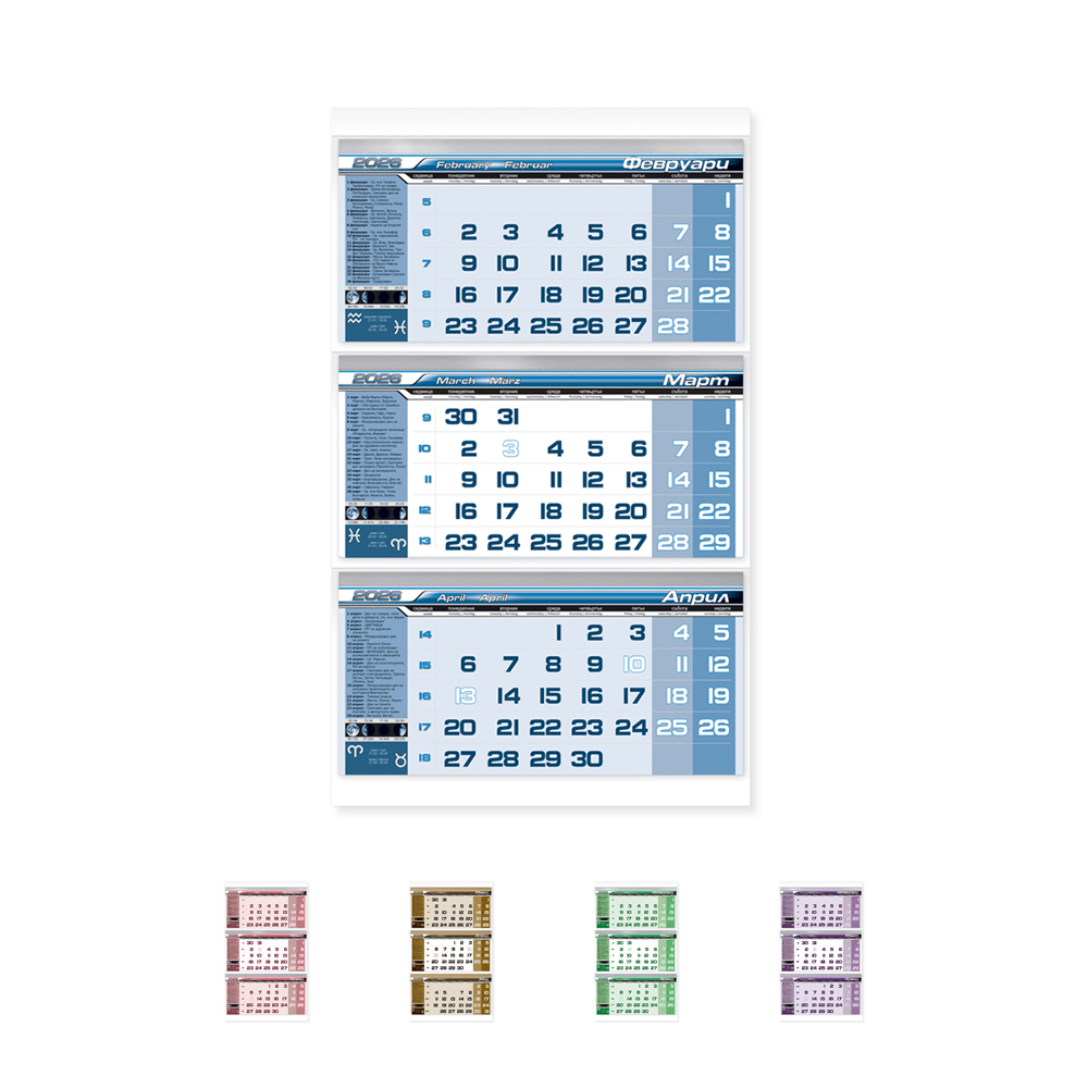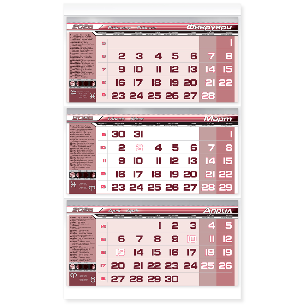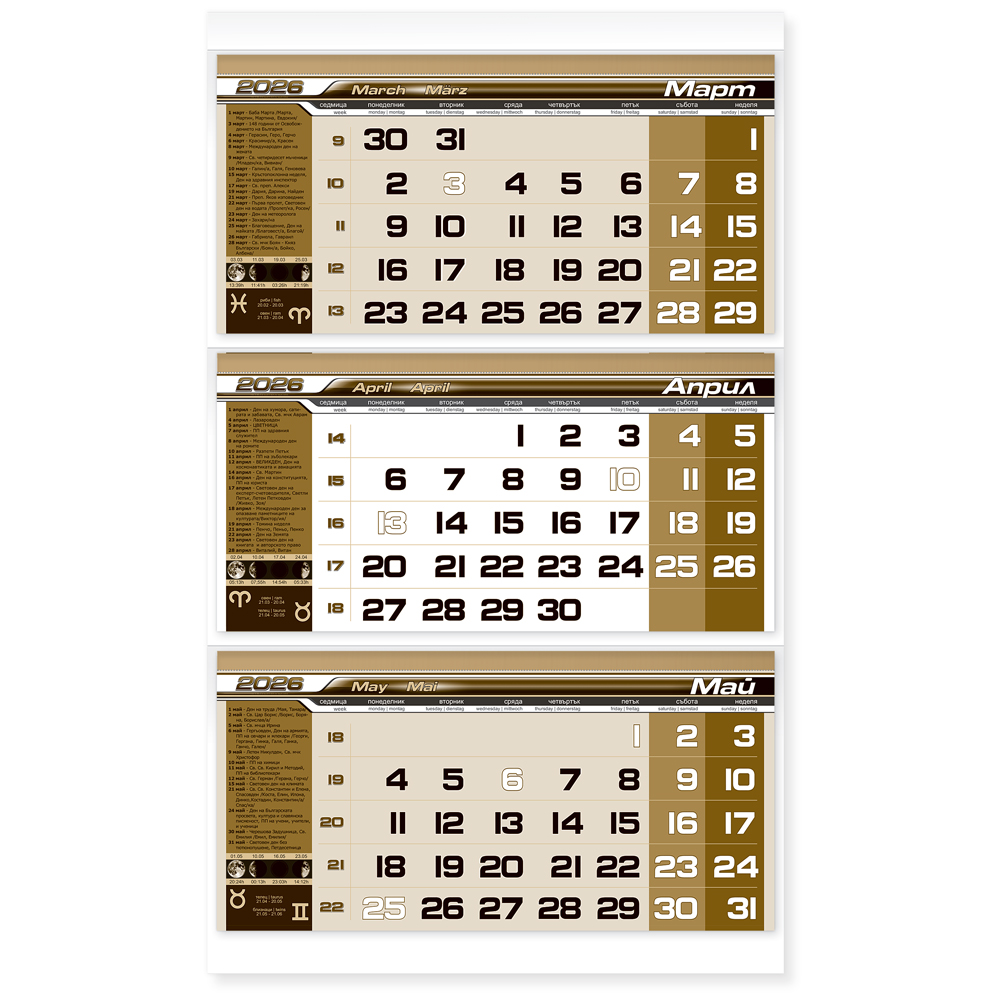 Календар с отличаваща се визия и металик цвят, отпечатан върху висококачествена хромова хартия.