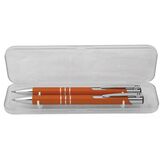Комплект химикалка и кутия. Материал пишещи средства: метал. Материал кутия: пластмаса. Размер на артикула: 27х157х25 mm. Печатаемо поле кутия: 50х8 mm. Печат: тампонен, ситопечат