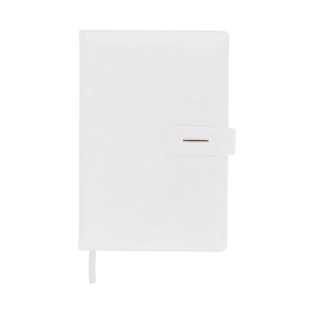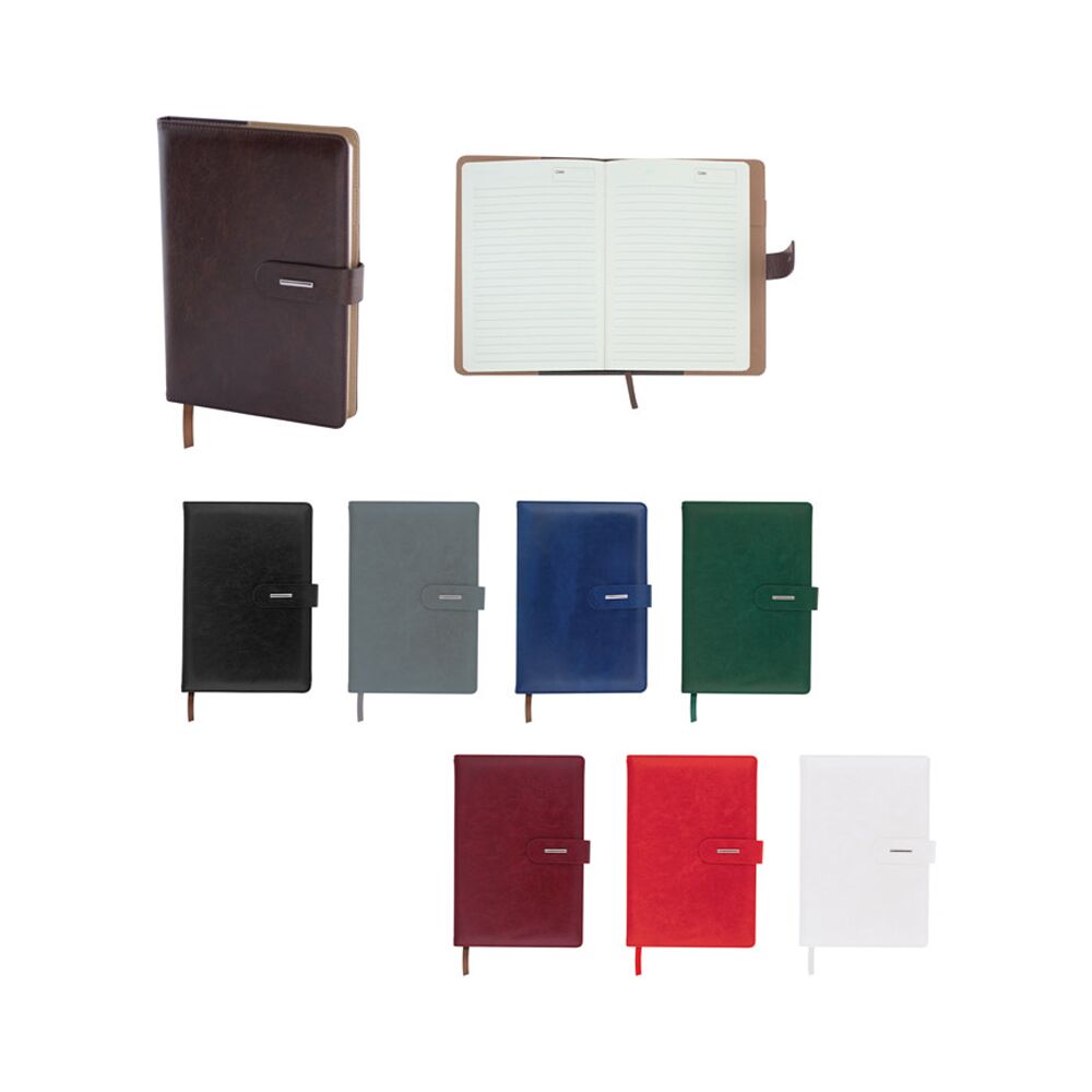 Тефтер A5 с разделител и закопчаване, 96 листа с редове, цвят на хартията слонова кост, твърда корица.