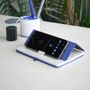 Тефтер A5 с ластик, 70 листа с редове, цвят на хартията бял, твърда корица, поставка за телефон. Материал: PU, хартия. Размер на артикула: 155х210x15 мм Печатаемо поле: 50х25 мм Печат: Дигитален UV печат, Трансферен печат