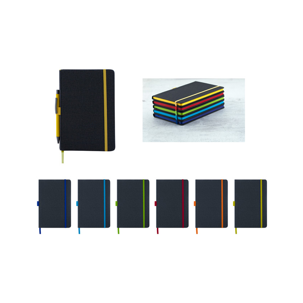 Тефтер A5 с ластик и разделител, 80 листа с редове, цвят на хартията слонова кост с цветен ръб, твърда корица. Материал: PU, хартия Размер на артикула: 146х212х14 мм Печатаемо поле: 90х55 мм Печат: Дигитален UV печат