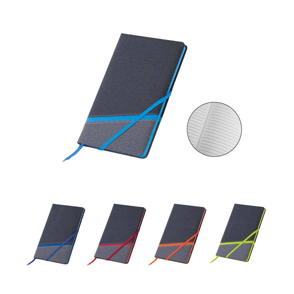 Тефтер A5 с ластик и разделител, 96 листа с редове, цвят на хартията слонова кост, твърда корица. Материал: термо PU, хартия. Размер на артикула: 135х210х15 mm. Печатаемо поле: 80х40 mm. Печат: тампонен, сухо преге.