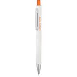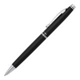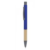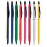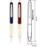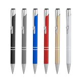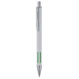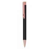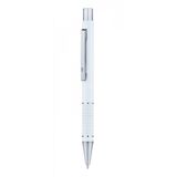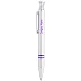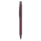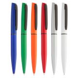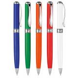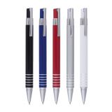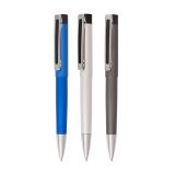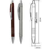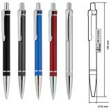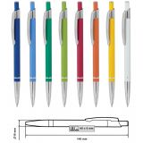 Рекламна алуминиева химикалка с цветно гумирано тяло и хромирани елементи.