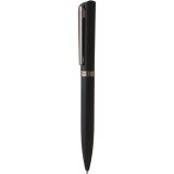 Рекламна алуминиева химикалка с цветно гумирано тяло и хромирани елементи.