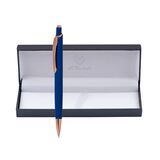 Химикалка, пълнител тип паркер. Материал: метал. Размер на артикула: Ø10х138 mm. Печатаемо поле: 45х6 mm. Печат: тампонен, ситопечат, гравиране. Опаковка: 500 бр. в кашон