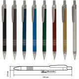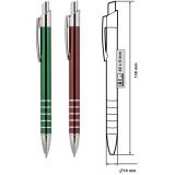 Химикалка, пълнител обикновен. Материал: метал. Размер на артикула: Ø10х140 mm. Печатаемо поле: 55х7 mm. Печат: гравиране. Цветно покритие при гравиране. Опаковка: 500 бр. в кашон