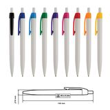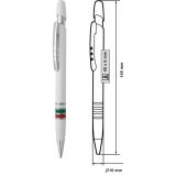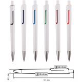 Химикалка, пълнител обикновен. Материал: пластмаса. Размер на артикула: Ø11х142 mm. Печатаемо поле: 30х7 mm. Печат: тампонен, ситопечат. Опаковка: 50 бр. в кутия/1000 бр. в кашон. При поръчка, количеството да е кратно на 50 бр.