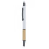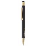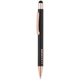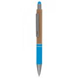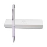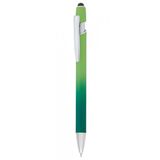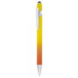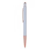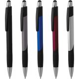 Рекламна пластмасова химикалка с накрайник за тъчскрийн и гумено захващане. Има вградена лапмпичка в цвета на стилуса, която осветява надписа след гравиране. Лампичката се активира с натискане на стилуса. Има включена батерия.
