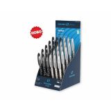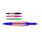 Автоматична химикалка. Тяло в прозрачен цвят с метален клип, бутон и пръстен. Окомплектована е с пълнител Schneider 774 M. При индивидуални поръчки над 2500 бр., има възможност за комбинации в цветовете на отделните части на химикалката.