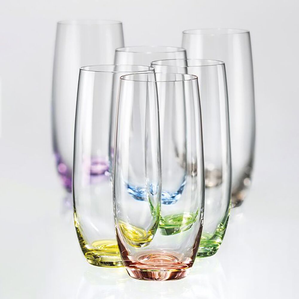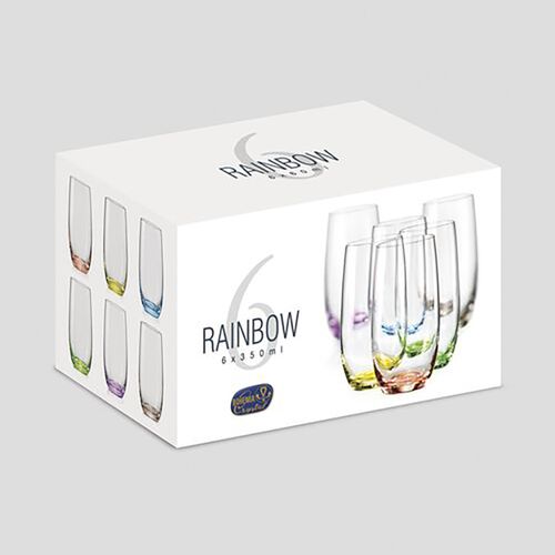 Комплект от 6 чаши с цветно дъно. Обем - 350 ml Идват в цветна картонена кутия.