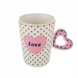 Нежен комплект от меко бяло мече с червена панделка и сладки червени лапички с чаша с нежни приказни сърчица с дръжка във формата на сърце. Зарадвайте любим човек с весел подарък. Цената включва нежна PVC розова кутия с размери: 13,5 х 8 х 8,2 см. Размери: Ø 8 см. ; височина: 8 см. ; вместимост: 250 мл. Размер на мечето: височина - 8 см.